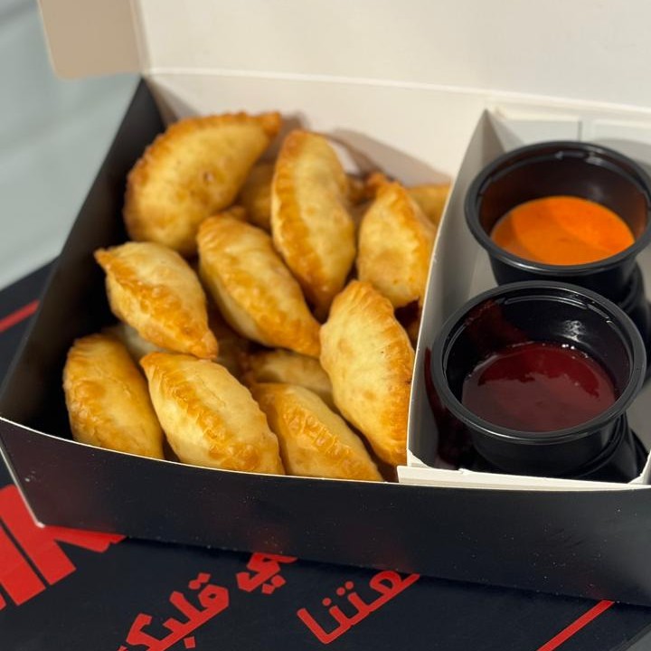 عباره عن 15 قطعه من السمبوس بحشوه دجاج التيكا وصوص التيكا لذيذه واحدة ورى واحدة مارح توقف ومعها صوص تيكا ورد صوص صحة عليكم
